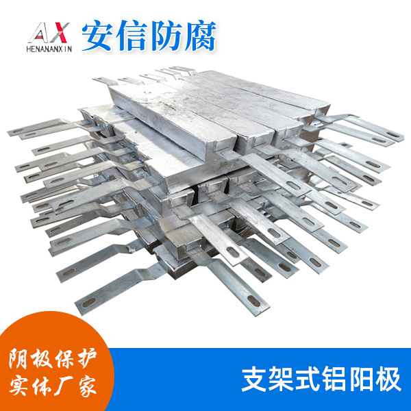 常用的鋁合金陽極有Al-Zn-In系和Al-Zn-Hg系陽極,適用于海水中的船舶、碼頭港口與海洋設(shè)施、海水冷卻水系統(tǒng)和儲罐沉積水部位等構(gòu)筑物的陰極保護。鋁合金陽極生產(chǎn)執(zhí)行GB/T 4948-2002《鋁-鋅-銦系合金犧牲陽極》。